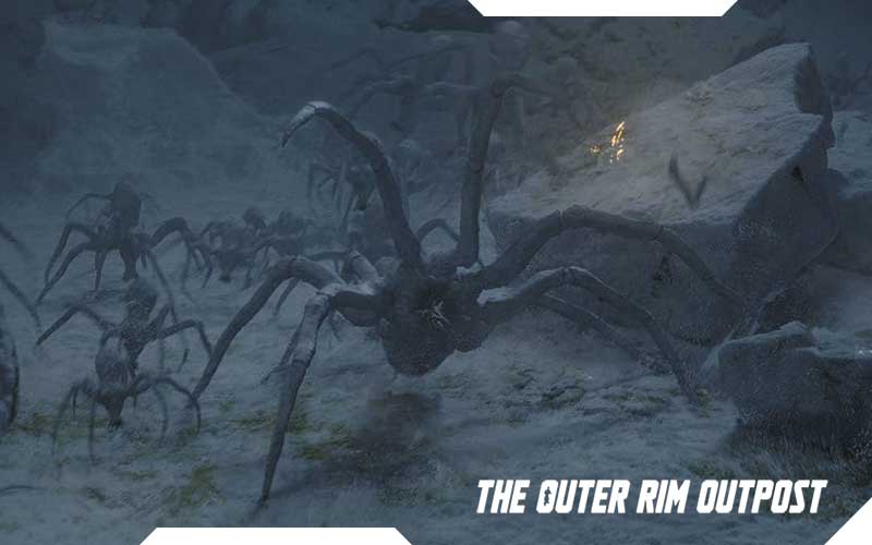 As luck would have it, the Child’s stomach got the team in trouble. He stumbled across an unhatched egg, broke it open and ate an eight-legged snack inside. Once he broke that egg open, he opened pandoras box and the whole group was introduced to a mass of knobby white ice spiders. These spiders are very similar to the Krykna we saw on Atollon in Star Wars Rebels.