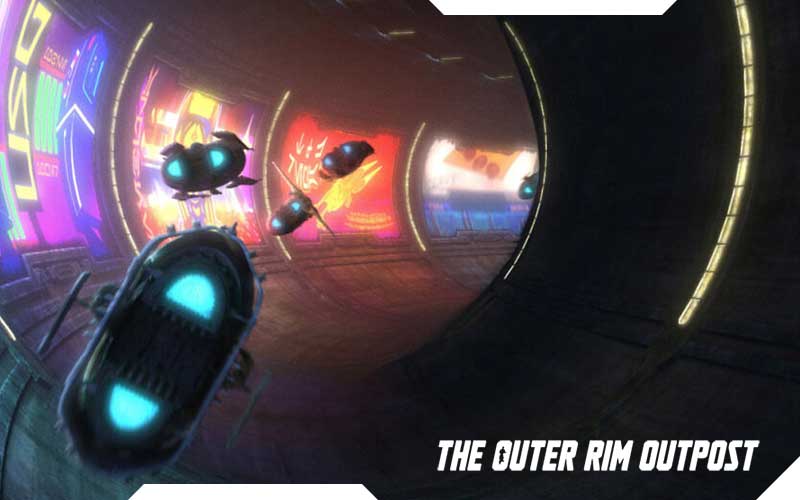 Riot Racing is dangerous not only to the racers but to spectators as well. Blaster bolts are fired indiscriminately and there are no protective barriers for the onlookers.